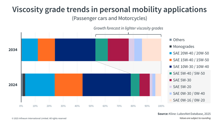 Driven by Euro V/VI emissions standards, fuel economy requirements and longer drain intervals the personal mobility lubricants market is shifting towards higher performance, lower viscosity, eco-friendly formulations. This means demand is expected to rise for synthetic and semi-synthetic lubricants that help to boost fuel efficiency.