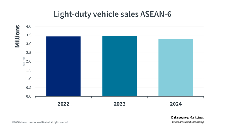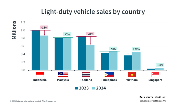 Despite the potential for growth, total ASEAN-6 light-duty vehicle sales were down in 2024 and across the region market performance is rather mixed.