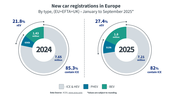 Europe’s automotive sector is deep in transition, caught between ambitious regulatory targets, economic headwinds, and tough global competition. In a rapidly evolving policy landscape, while progress towards net zero continues, the automotive decarbonisation journey is proving more complex and uneven than many had hoped. Uwe Zimmer, Infineum Industry Liaison Strategy Advisor, shares the latest 2025 data and examines where the market stands today, how OEMs and policymakers are responding, and what the next chapter might mean for Europe’s green mobility ambitions.