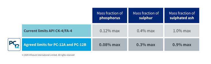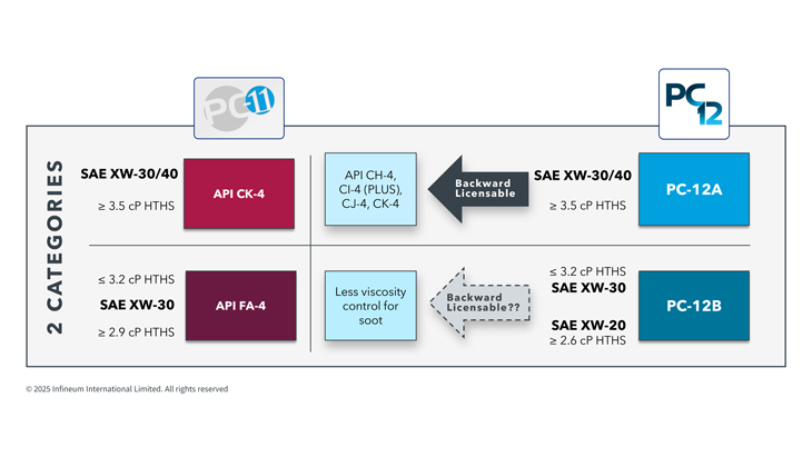 PC-12 is split into two categories, PC-12A and PC-12B, that align with the viscosity divide that exists today with API CK-4 and FA-4.