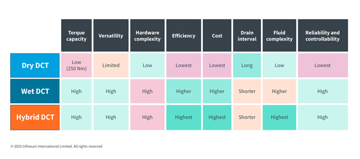 DCTs are automatic transmissions that use a manual gearbox architecture with two sets of gears that are always engaged – providing quick and responsive shifts. There are three broad types: wet, dry and hybrid, each with their distinct attributes.