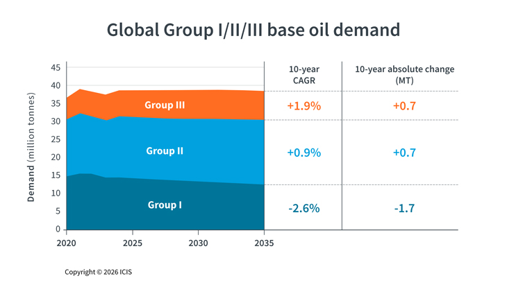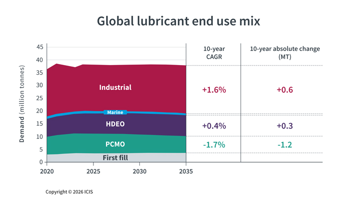 Faster BEV growth and OEM demands for longer drain intervals could lower lubricant (and base oil) demand. However, ICIS also sees industrial growth in India, Southeast Asia and parts of Africa increasing lubricant demand from those regions and putting a greater focus on higher quality formulations.
