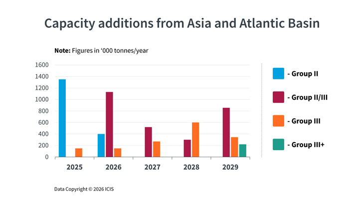 ICIS forecasts that the market will remain over-supplied in the next five years as capacity comes online from Asia and the Atlantic Basin regions. Predominantly this is likely to be the case for Group II, as refinery expansions and new projects are expected to come online before market demand picks up in the emerging markets.