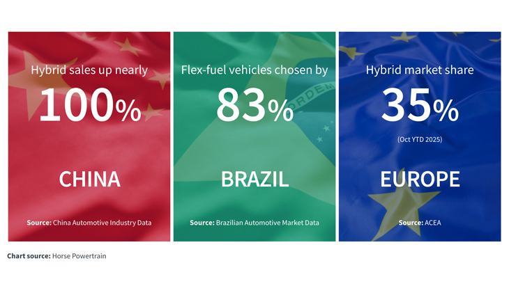 With battery electric vehicles dominating media headlines, investment flows, and policy discussions, it can seem that the automotive industry has just a single, fully electric path to net zero. Yet the reality is far more complex. Insight reports on a session delivered by Ingo Scholten, Deputy CTO of Horse Powertrain, at the CTI Symposium. It explored how achieving faster global decarbonisation, while also ensuring a competitive and profitable automotive industry, requires a multi-technology approach that reflects different consumer and regional needs.