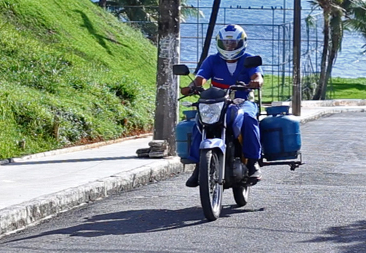 Some Brazilian cities have a network of piped gas, but here in Salvador the majority of the distribution is carried out through the use of bottled gas canisters, containing liquefied petroleum gas which are mainly transported by motorcycles.